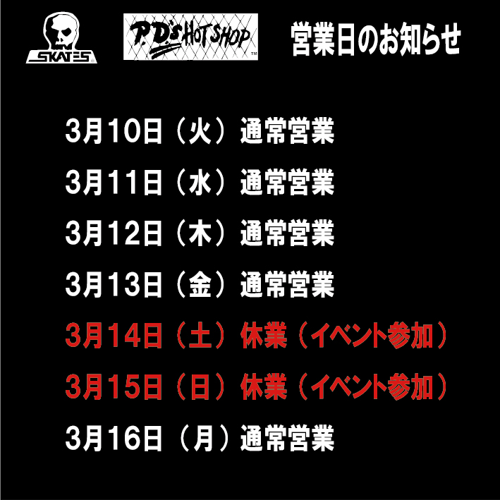 3月14日、15日はイベント参加の為